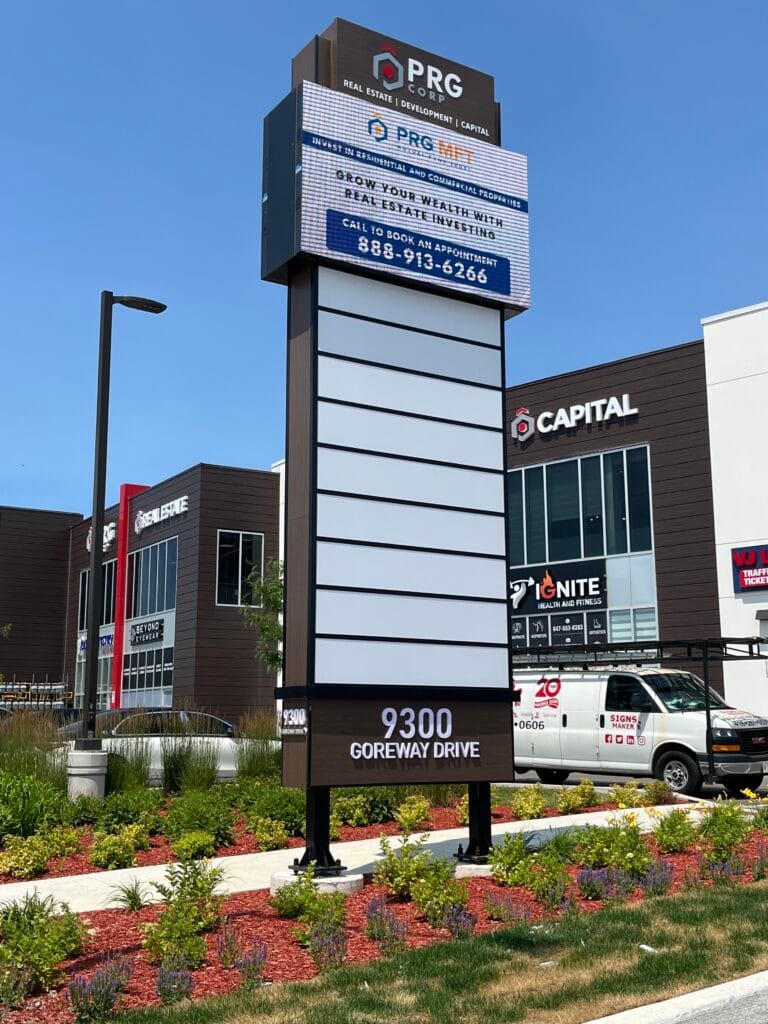 These signs can range from simple non-illuminated panels to full illuminated double-sided cabinets with tenant panels for plazas. Their tall, vertical design makes them ideal for increasing brand visibility over long distances — a critical advantage in busy commercial corridors or along highways.
